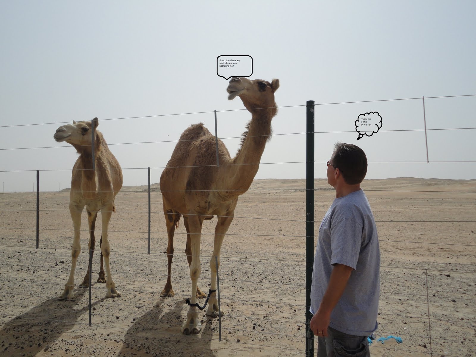 On the way out of Abu Dhabi to the town of Liwa and the edge of what is called the "Empty Quarter" the largest uniterrupted sand desert in the world. It covers 225,000 square miles, more area than France, and although the Sahara is 15 times the size of the Empty Quarter, the Empty Quarter holds half as much sand mainly because the Sahara is mostly graveled plains and rock outcroppings. An incredible site to see, but back to Joe Camel.